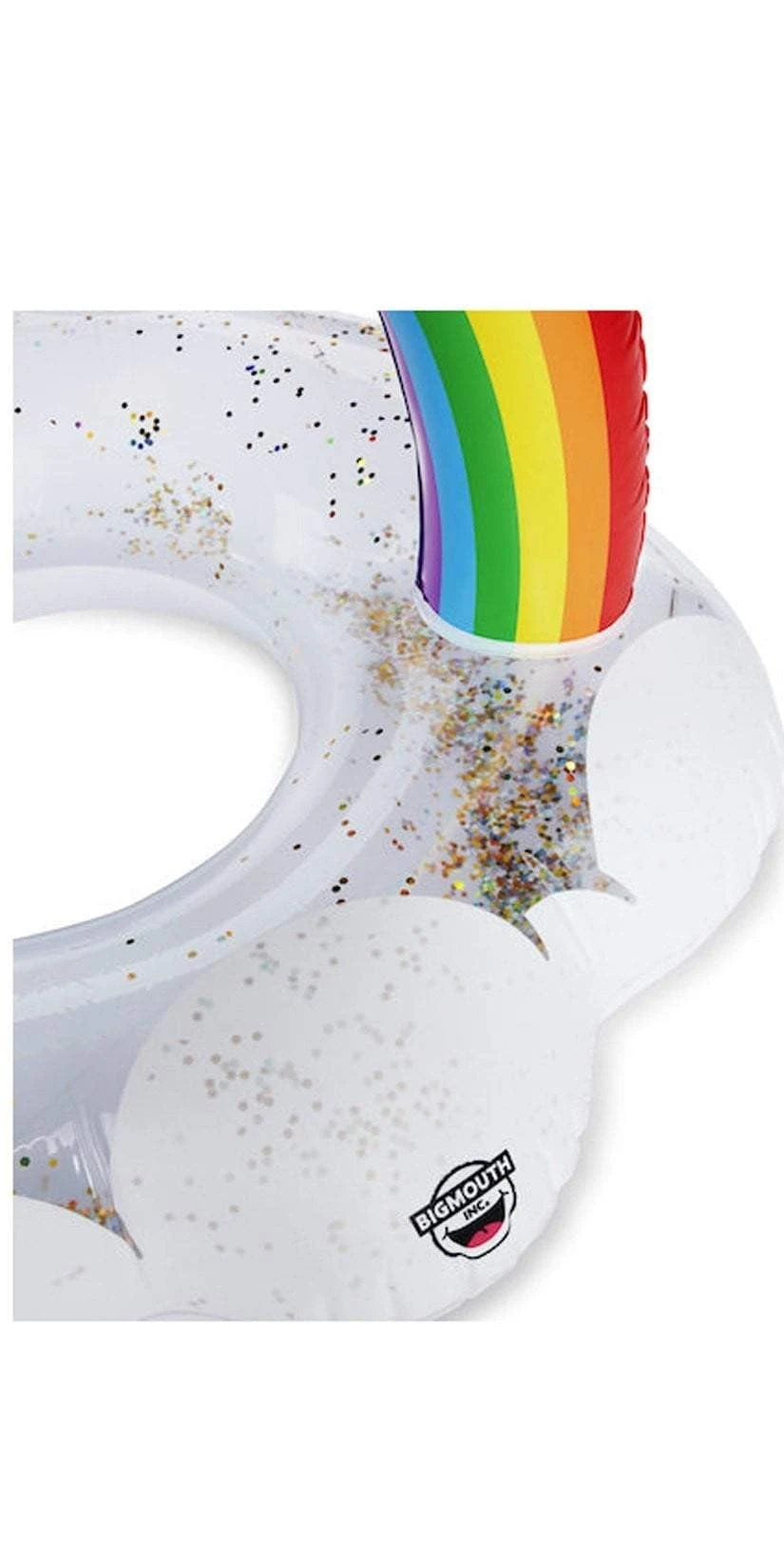 The Big Mouth Giant Rainbow Cloud Pool Float is a large, bright, fun rainbow cloud to lounge and relax on. The cloud is infused with bold colorful glitter so when its in the sunlight it shimmers and shines just like you!