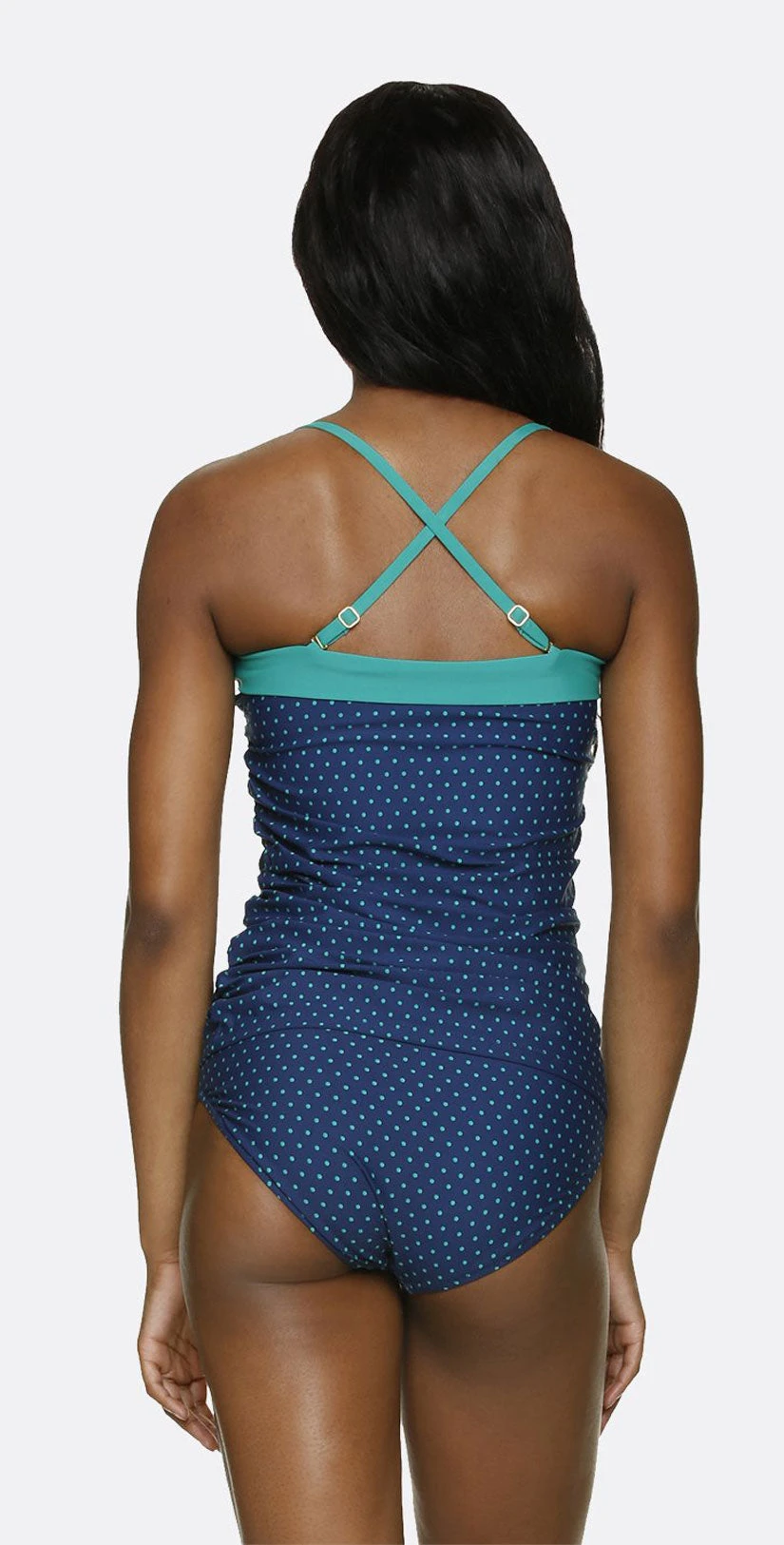 This Draper James for Helen Jon Bandini in Petite Dot is full coverage with a classic fit. Ample torso length, built-in cups, and removable straps make this the perfect suit for the woman with an active lifestyle.