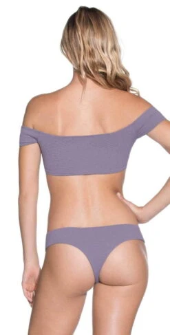 The Maaji Purple Sage Cumbia Top features a reversible option to a floral print in a trendy off the shoulder silhouette. The straps of this top can be worn on or off the shoulder and offer removable soft cups. Pair with the matching Maaji Purple Sage Sublime Bottom.